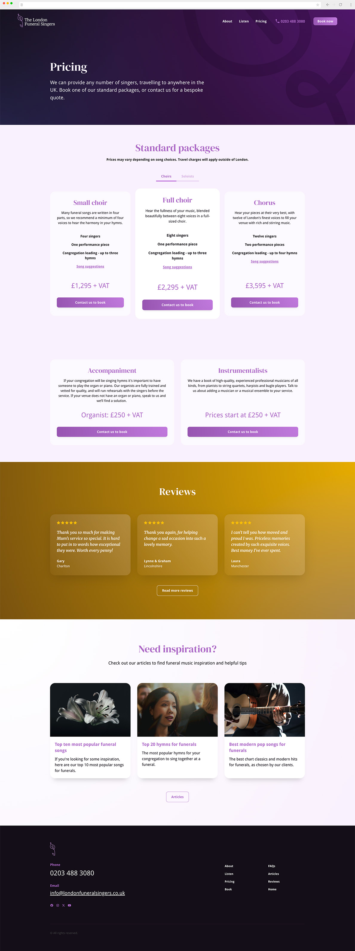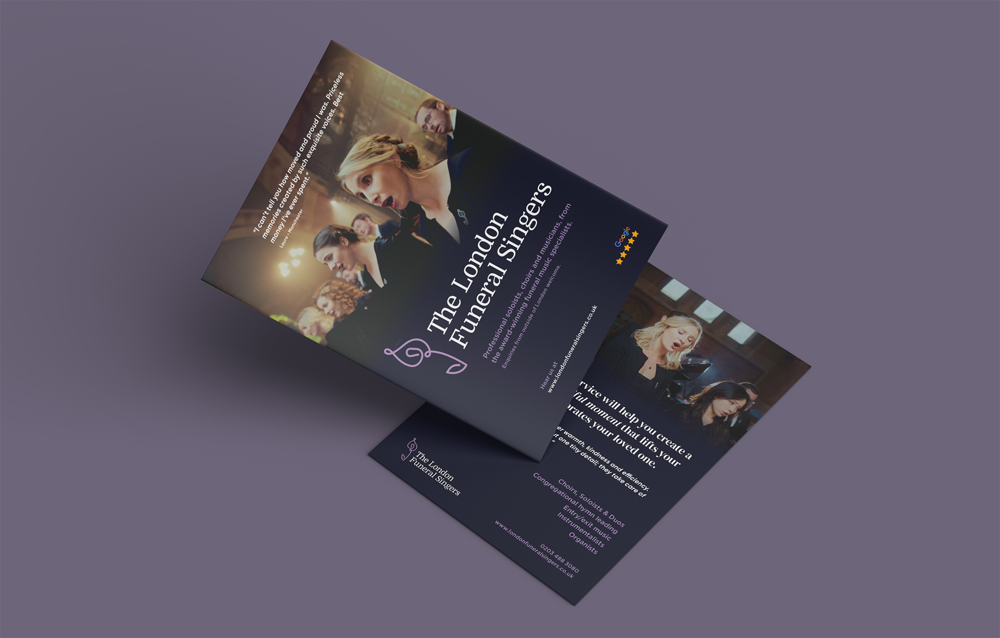 The London Funeral Singers provide bespoke choirs and musicians for funeral services across the UK. I was asked to create a visual identity to reflect their premium, comforting and often dramatic service.